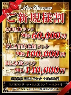 | コメント | 【新規割引の詳細について】 下記料金はフリーでのご案内になります ---------------------------------- ◆GOLDランク◆ 【フリー】 60,000円? ---------------------------------- ◆PLATINAMランク◆【フリー】 100,000円? ---------------------------------- ◆BLACKランク◆ 【フリー】 140,000円? ---------------------------------- ご希望の女性を指名の場合は… ---------------------------------- GOLDランク +10,000円 ---------------------------------- PLATINAMランク・BLACKランク +20,000円 ---------------------------------- 新規割適用条件 ? シティヘブン口コミ投稿が必須です。 投稿頂かない場合は割引対象外です。 ? シティヘブンのアカウント作成が必要 ---------------------------------- ※ 新規割一部対象外女性もおります、詳しくはコンシェルジュにお問い合わせ下さい。 ---------------------------------- 【割引リンク】 www.cityheaven.net/tokyo/A1303/A130301/azabufrasia/coupon/ |